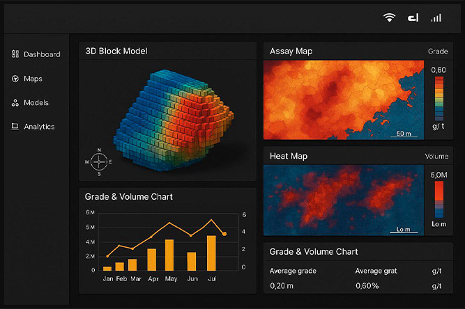 Data collected in the field syncs to the GeoSynap Tech Cloud for further processing, updates to 3D block models, and integration with mine planning systems, including SCADA compatibility through OPC UA and MQTT.